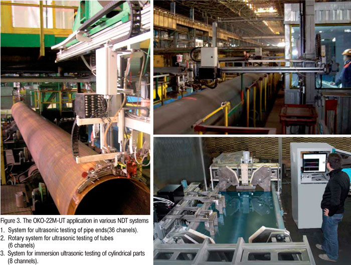 Technical capabilities of the flaw detector allow to use it both in stationary-type in-line and off-line testing systems.